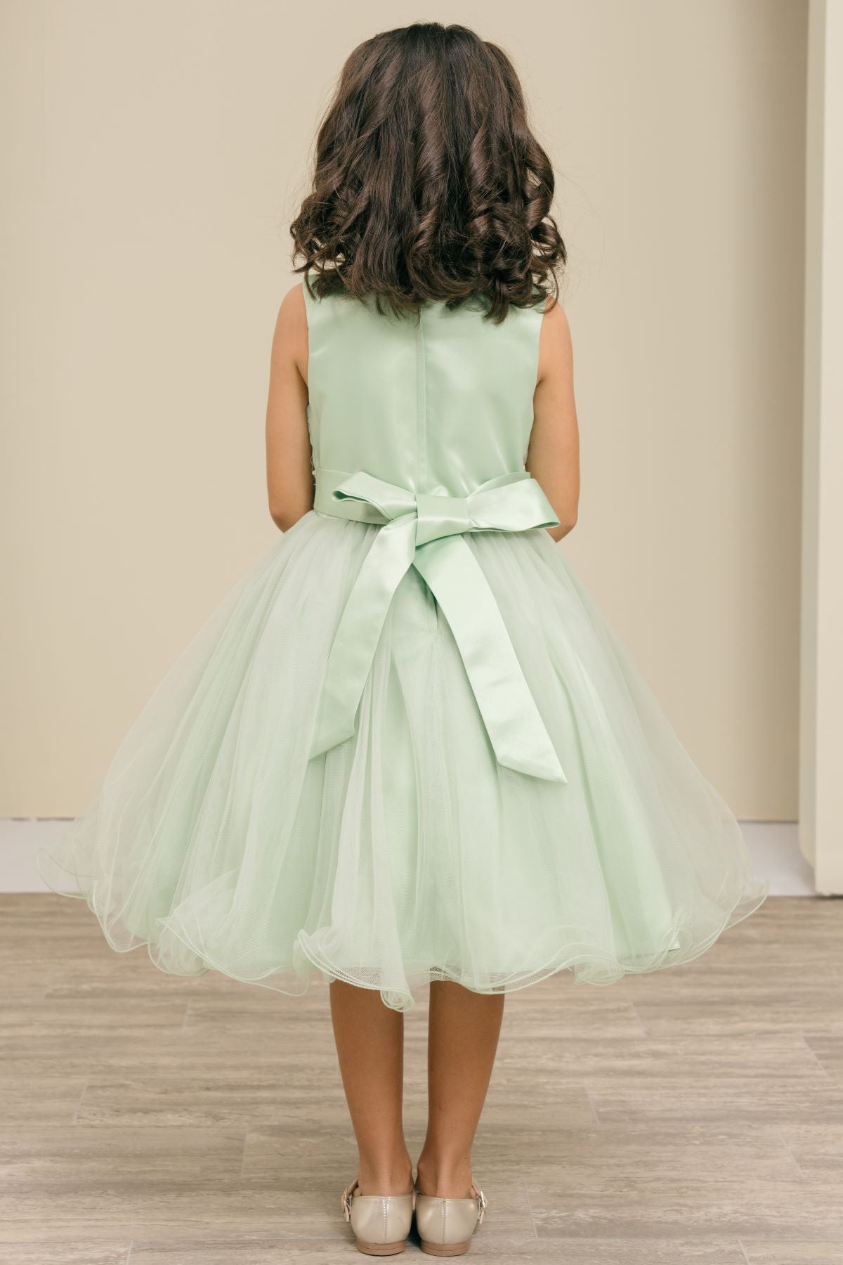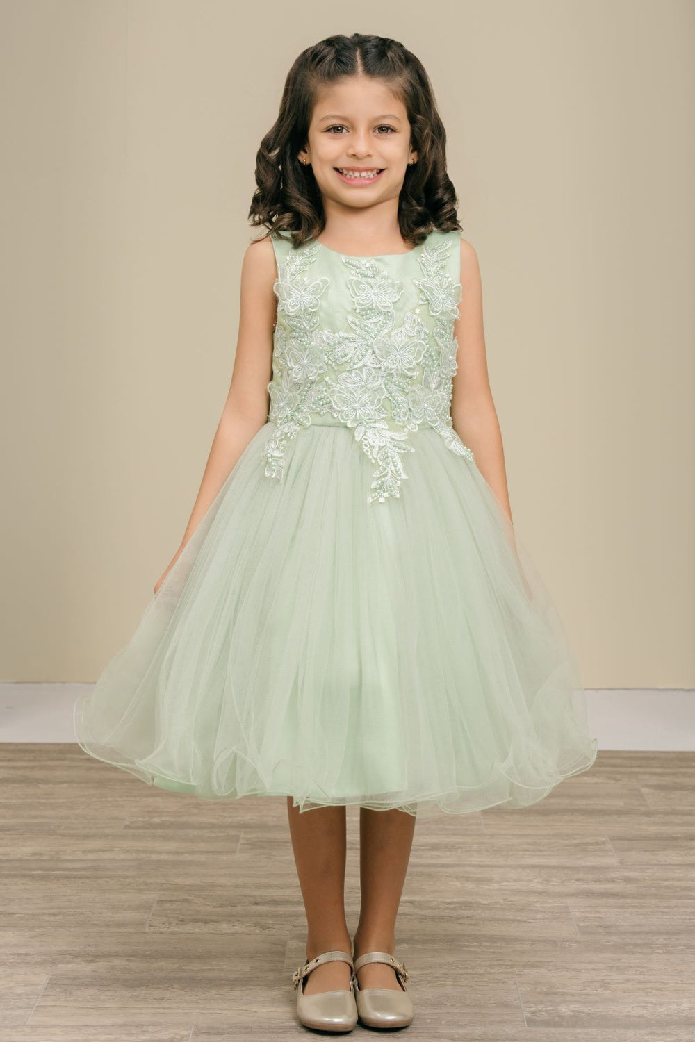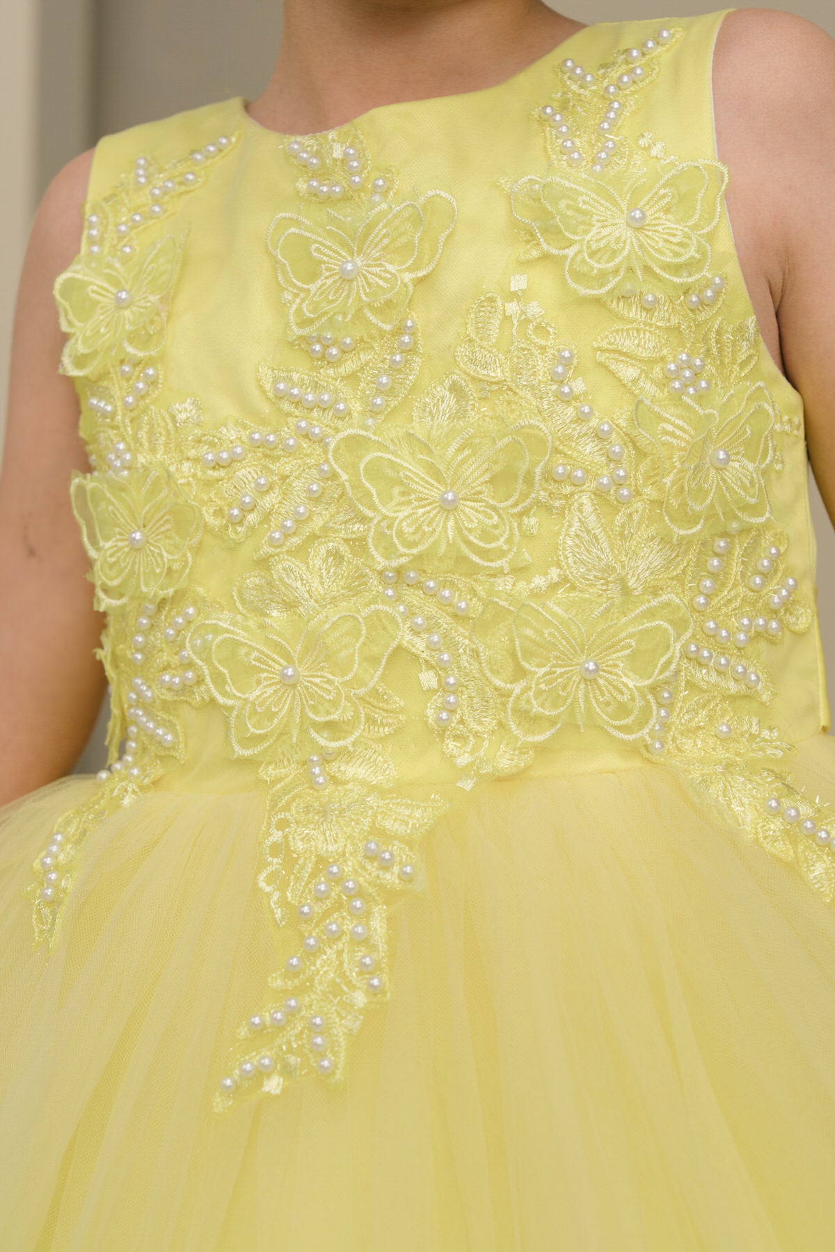 Super cute butterfly lace dress with sparkle tulle dress. zips and ties in the back. Perfect for your special occasion.