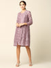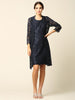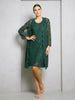 Short two piece lace mother of the bride or groom dress. Removable lace jacket. Gown is shift style with wide tank straps.