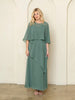 Elegant simplicity defines this Eva USA 3538 two-piece bridesmaid or mother-of-the-bride ensemble. The sleeveless tiered sheath dress features a flattering silhouette with a discreet back zipper, full lining, and a practical left-side pocket. Layer it with the coordinating chiffon poncho, designed with a button back closure for effortless styling. Crafted in soft chiffon, this versatile set transitions seamlessly from ceremony to reception, offering refined sophistication with understated charm.