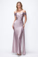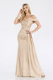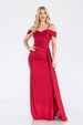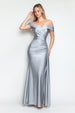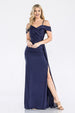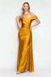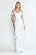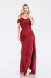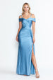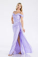 Lenovia 5320 off the shoulder side drape bridesmaid or evening gown in shiny Venus fabric. Perfect dress for winter formal or military ball. Sizes S to 4X.