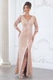 Elegant and timeless, this Lenovia 8373 Venice Lace formal dress features intricate embroidery lace detailing along the neckline, sleeve openings, and leg opening. The 3/4 length sleeves and flowing flare skirt create a graceful silhouette perfect for any formal occasion. Fully lined with a hidden back zipper and supportive bra cup inserts, this gown offers comfort and confidence. The stretchy material ensures a flattering fit in sizes S through 4XL. A sophisticated choice for weddings, galas, and special events.