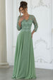 Lenovia style 8375. Elegant and timeless, this Venice lace and chiffon floor-length gown combines sophistication with comfort. The beaded embroidery lace adorns the V-neckline and high back, while three-quarter sleeves add graceful coverage. A sweetheart neckline lining provides flattering support, and the chiffon skirt features a princess line overlay for a flowing silhouette. Fully lined with a hidden back zipper and built-in bra cup inserts, this dress is designed for all-day wear at formal events, weddings, and special occasions.