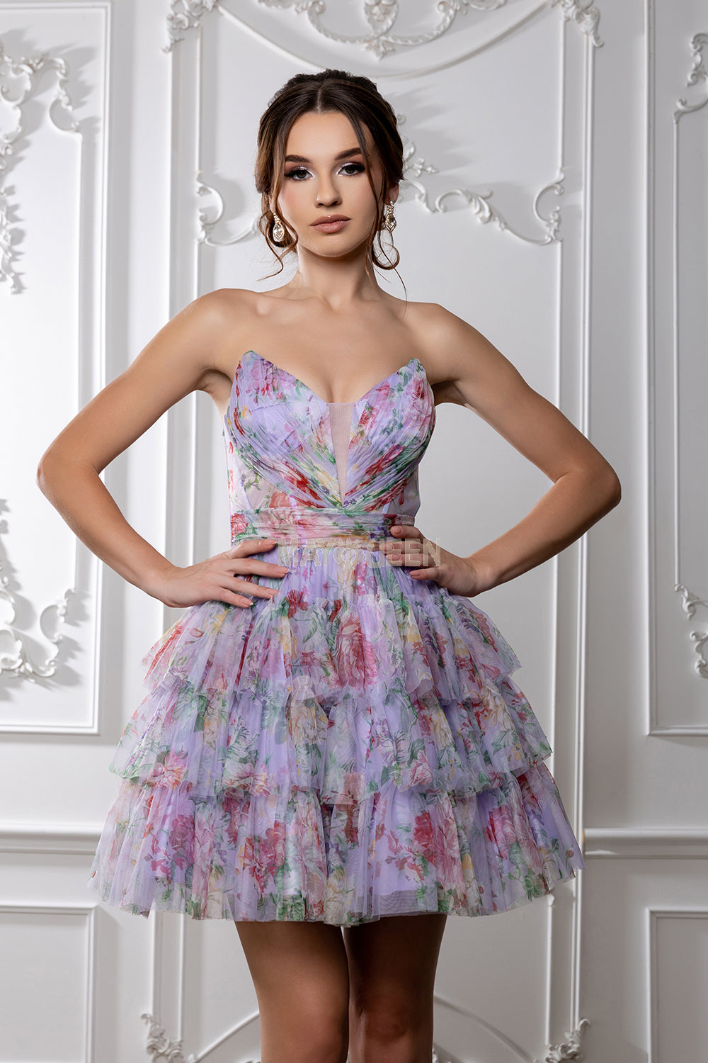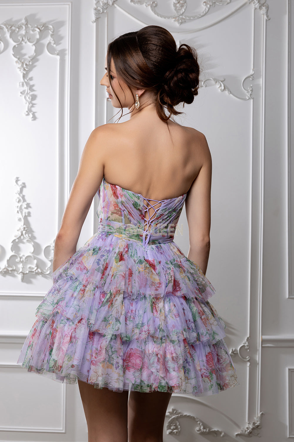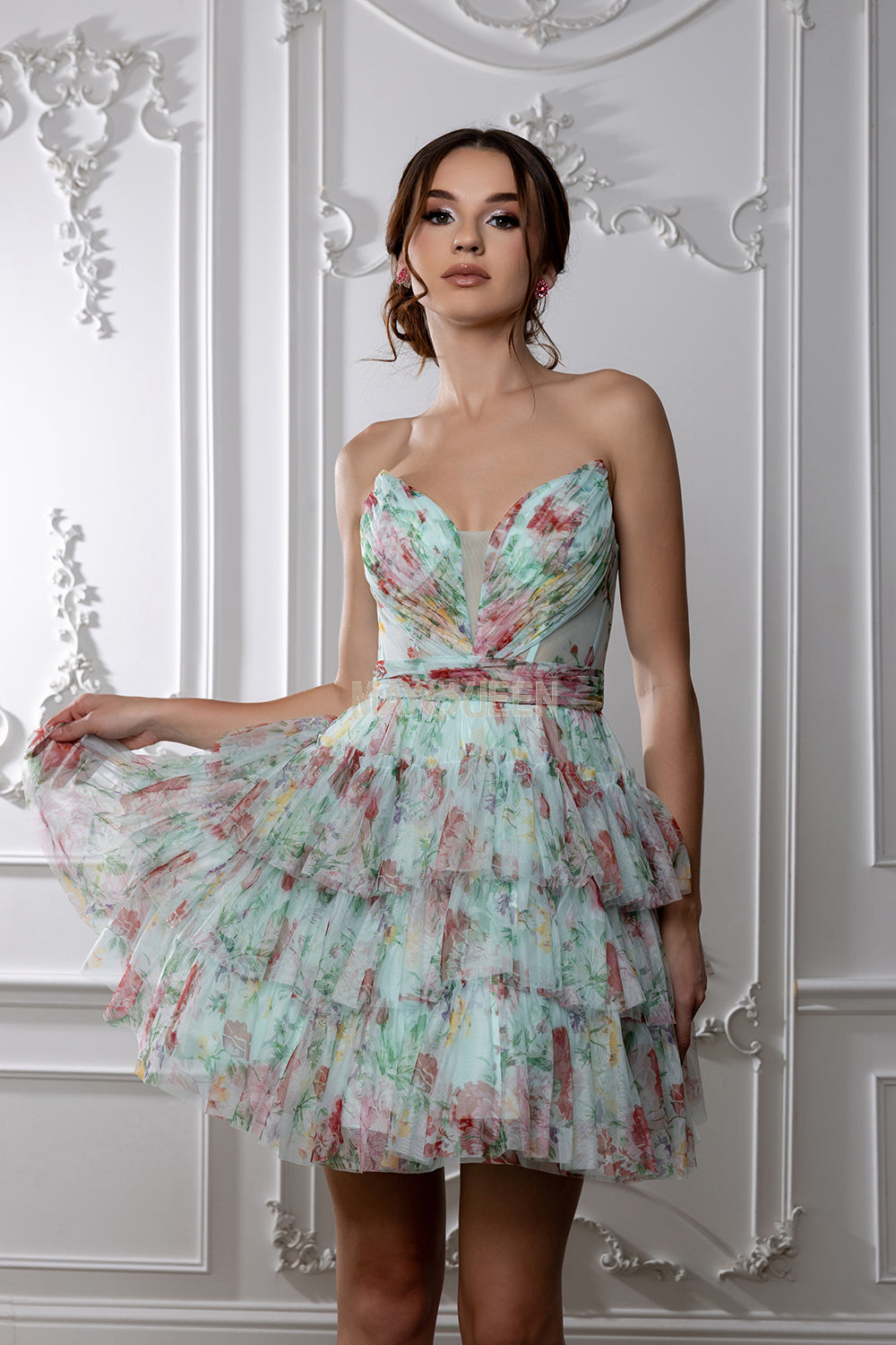Short layered floral pixie hoco dress.