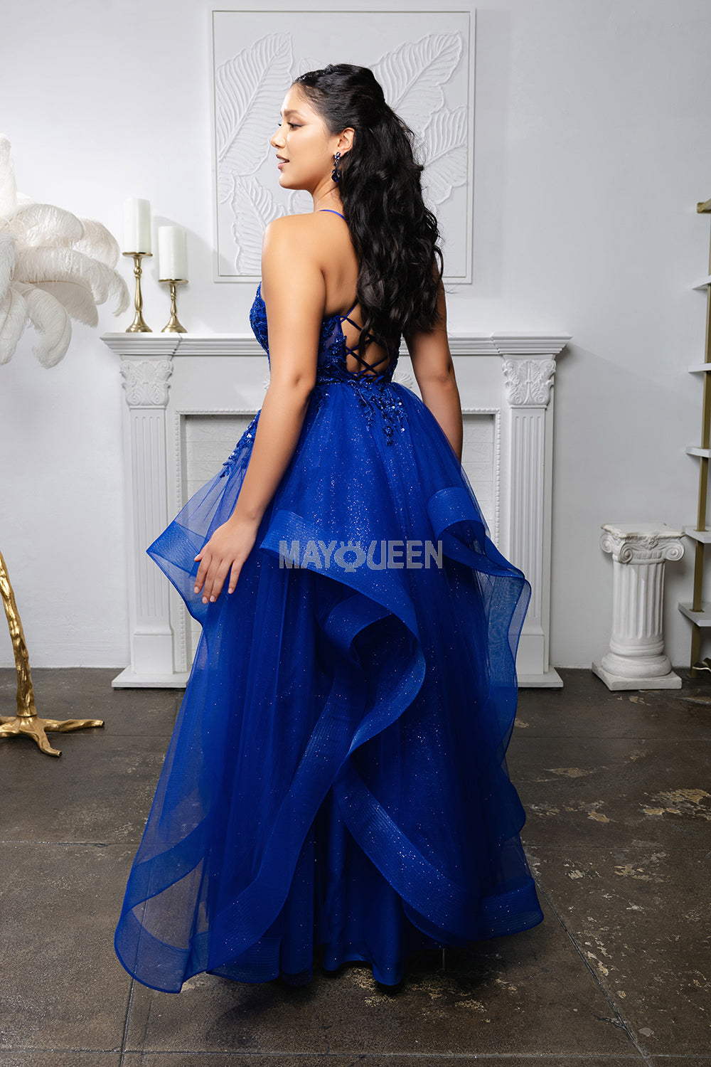 Floor length MayQueen MQ2203 with hanky hem styling.