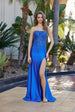 Nox Anabel A1743 presents a fitted stretch satin silhouette engineered for formal occasions. The garment features a mesh illusion bodice adorned with sequined appliqué detailing, providing visual interest and dimensional embellishment. A thigh-high leg slit offers enhanced mobility and contemporary styling. The back incorporates a functional lace-up closure with gathered fabric detail below the lacing, creating structured definition. The stretch satin construction ensures comfort and movement while maintaining a refined, tailored appearance suitable for prom or formal events.