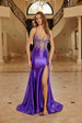 Slip into pure glamour with this show-stopping Nox Anabel C1831 shimmer jersey gown! Adorned with sparkling woven rhinestones across the bodice, this fitted stunner features delicate spaghetti straps and a chic lace-up back for that extra touch of allure. The floor-length skirt flows beautifully with a thigh-high slit that elongates your silhouette and keeps things fun and flirty. An elegant court train completes the look. Perfect for making a dazzling entrance at your special event!
