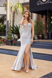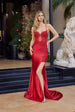 Prepare to turn heads in this show-stopping Nox Anabel C1841 floor-length shimmer satin prom gown that's basically a wearable work of art. The boned bodice keeps you supported and sculpted while the sheer illusion plunging neckline with mesh keyhole detailing adds just the right amount of drama and intrigue. A lace-up back gives you that extra touch of elegance, while the court-length train trails behind you like you're walking a red carpet. The thigh-high leg slit keeps things fun and flirty, and here's where it gets really good—the entire bodice is fully beaded and sequined with beading that cascades down the sheer mesh thigh panel for maximum sparkle and shine. This is the dress that makes your entrance unforgettable.