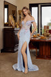 Shimmer into the spotlight in this show-stopping Nox Anabel C1845 evening gown that demands attention. The sheer mesh boned bodice features intricate floral embroidery adorned with sparkling beads and sequins for maximum glamour. An off-the-shoulder neckline with a daring plunge creates instant drama, while the thigh-high leg slit offers a flirty peek of leg. Adjustable back lacing ensures a perfect fit, and the elegant court train adds that red-carpet moment. Perfect for prom, galas, or any occasion where you want to turn heads and own the room.