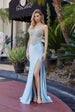Strapless Sweetheart Neckline Full Silver Stone Bodice Applique on a Sheer Boned Waistline Crafted with Shiny Satin with Leg Slit and a Sweeping Train with Lace Up Back This stunning Nox Anabel gown features a strapless sweetheart neckline with a full silver stone bodice appliqué that catches the light beautifully. The sheer boned waistline provides structure and elegance, while the luxurious shiny satin fabric drapes gracefully. A practical leg slit offers ease of movement, and the sweeping train creates a dramatic finish. The lace-up back adds both security and a touch of romantic detail, making this dress perfect for your special day.