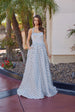 Nox Anabel E1925 floor length satin prom gown in fun polka dot print. This elegant halter style gown has a hidden back zipper, is fully lined and has a built in bra, and it has POCKETS!