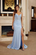 Turn heads in this stunning Nox Anabel H1875 glitter stretch satin gown that's pure magic! Delicate spaghetti straps frame a flattering V-neckline, while the sheer illusion boned waist features intricate beaded embroidery for that extra sparkle. A daring leg slit keeps things fun and flirty, and the lace-up back adds a touch of elegance. Complete with a graceful sweep train, this showstopper is ready for prom, formal events, or any occasion where you want to feel absolutely fabulous.