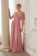 Elegant and flowing Nox Anabel ME152 chiffon floor length mother of the bride or groom gown. This lovely, wispy gown features beautiful embroidery accented with hand beading at the waist from the front all the way around the back. The flutter sleeves give you a bit of modesty without being uncomfortable. Fully line, hidden back zipper, built in bra cups.