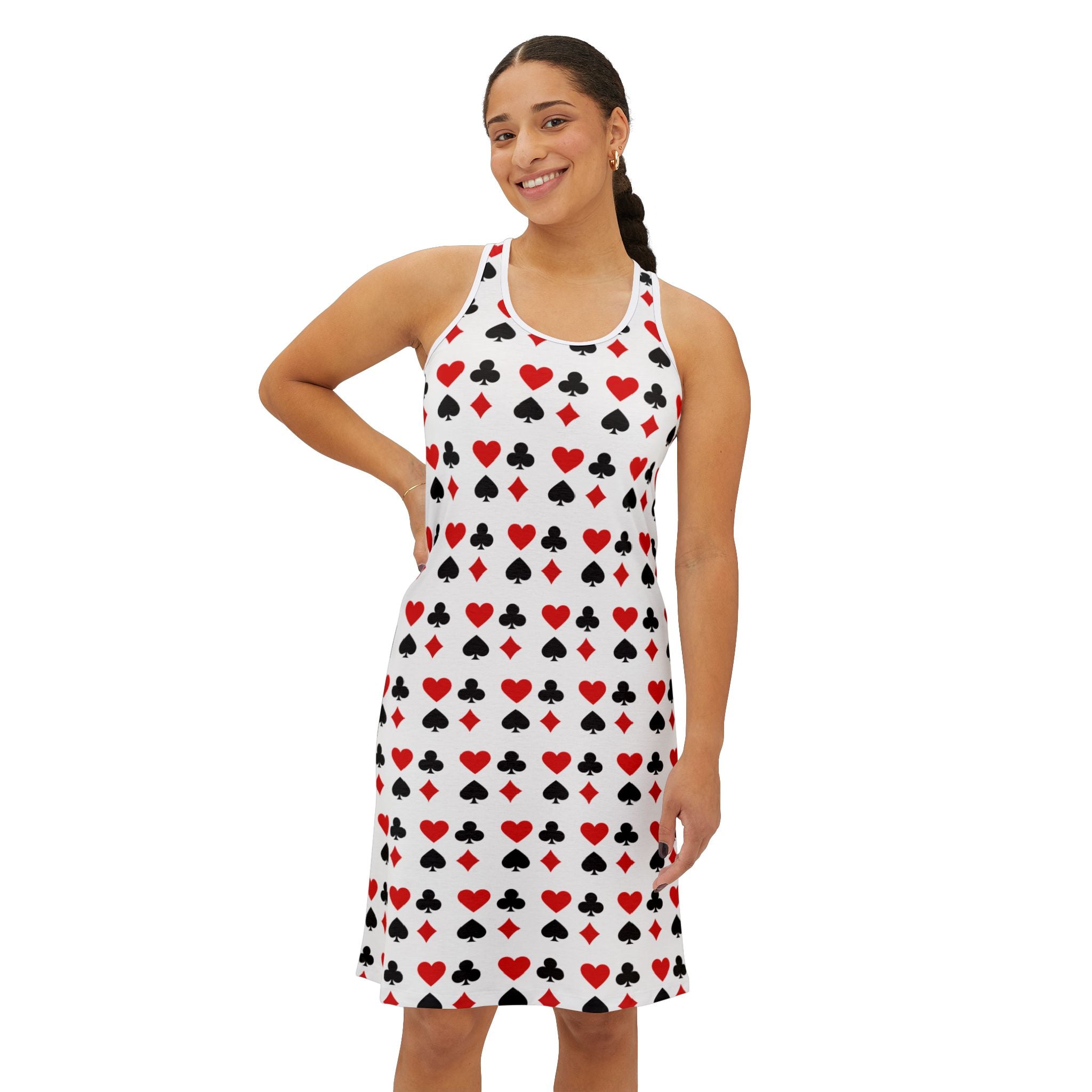 Step into comfort and style with this Women's Racerback Dress. The playful playing card design instantly uplifts your mood, making it perfect for sunny days out or cozy evenings at home. Whether you're attending a summer barbecue, a fun festival, or a casual brunch with friends, this dress brings a cheerful vibe to any occasion. Ideal for women who love to express their playful side, it's a wonderful gift for birthdays, holidays, or just because! Embrace the warm weather in a dress that offers both fashion and flair.